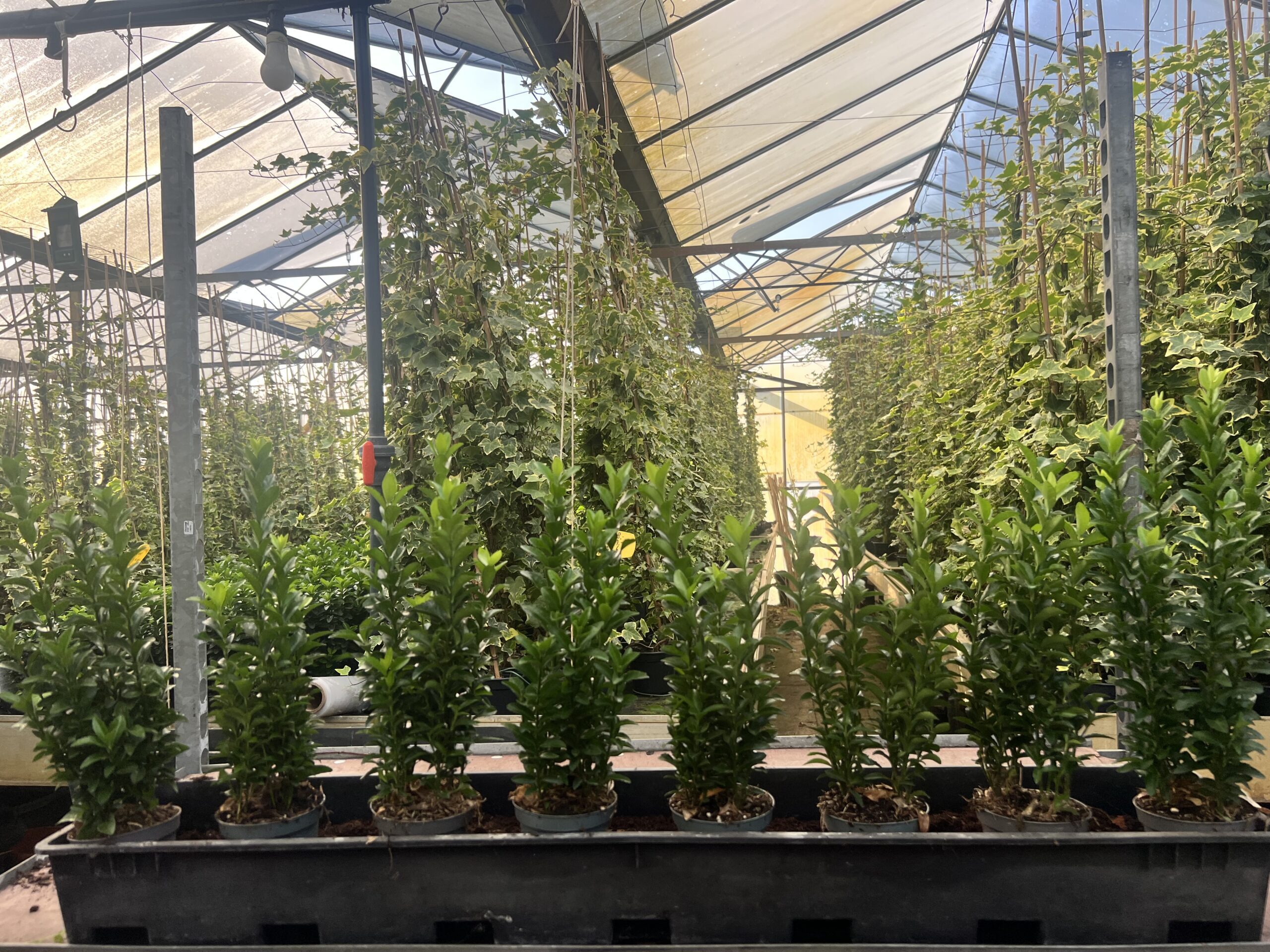 Green spire Euonymus 9 cm pot met 4 planten, op deze 100 cm staan 8 planten, wij adviseren 7-9 per m. De keus is aan u 15/20 cm €1,50 en 20/30 €1,75 en 30/40 cm €2,00